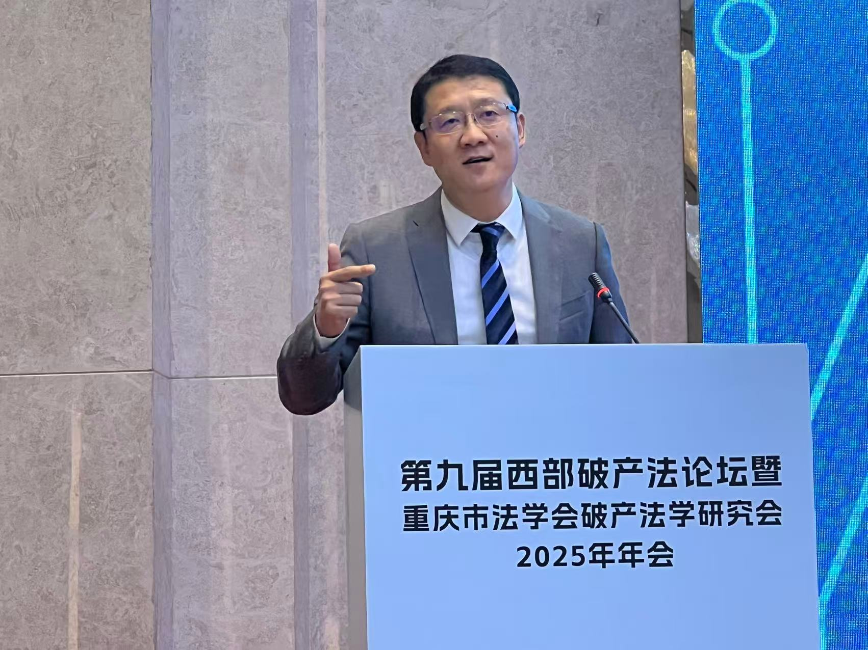、重庆破产法庭联合承办的“第九届西部破产法论坛暨重庆市法学会破产法学研究会2025年年会”在重庆维景国际大酒店隆重召开,580余名来自全国司法实务界、理论界的嘉宾出席本次论坛。齐明教授受邀参会,受聘为“重庆市法学会破产法学研究会专家顾问”,并在第一单元主题演讲。第一单元主题为“破产法治现代化的制度革新与前沿挑战”,齐明教授以《我国重整制度的回顾、探索与展望》为题,回顾了近二十年来我国重整制度在立法刚性与司法弹性互动中的市场化发展历程。